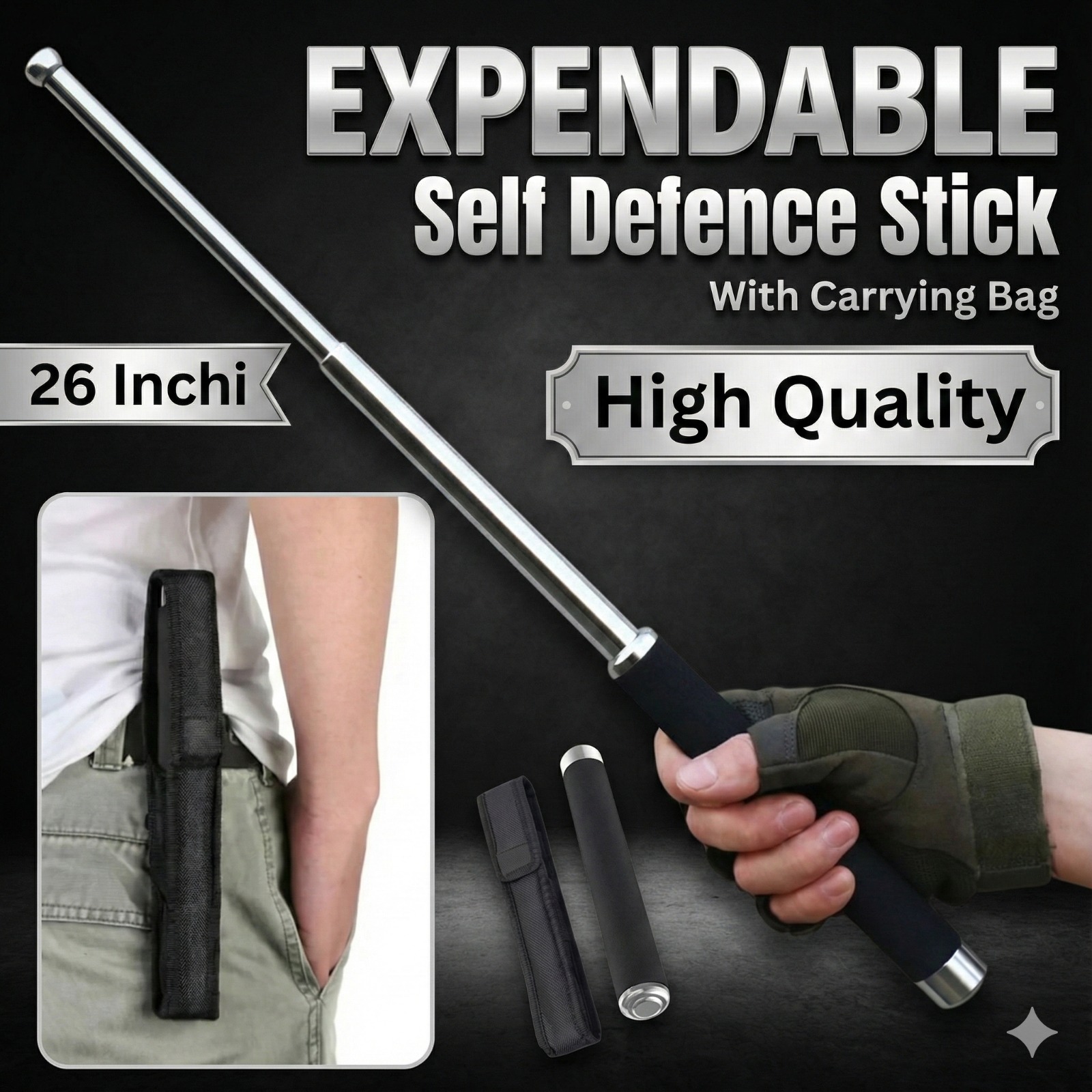 • একটি প্রিমিয়াম কোয়ালিটির আত্মরক্ষার লাঠি ও সাথে পাচ্ছেন ব্যবহার যোগ্য ব্যাগ।